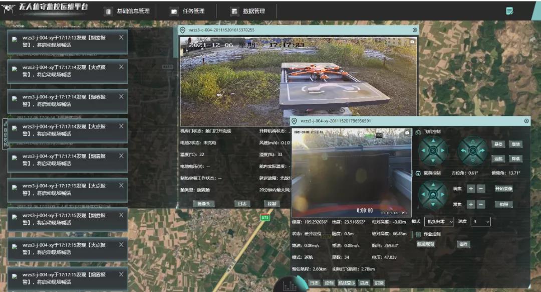 无人机驻点来宾东糖凤凰有限公司厂区内,周边蔗区环绕,蔗农也居住周边,无人值守无人机的稳定运行,起到了较好的秸秆禁烧警示作用。一是能更好的监控厂区周围甘蔗叶焚烧情况,做到科学、有效、快速监控。二是无人机自动起飞、自动识别火点并用当地方言喊话“烧甘蔗叶违法,请立即灭火”可以第一时间告警火点处置,驱离纵火人员,将污染遏止在萌芽阶段,时间长了也会被当地周边蔗农熟知上空有无人机在监控,起到了较好的警示作用。三是在秸秆禁烧“堵”的时段(气象条件不利),无人机可以在夜间出动巡航,是当地网格员秸秆禁烧巡逻重要组成部分。